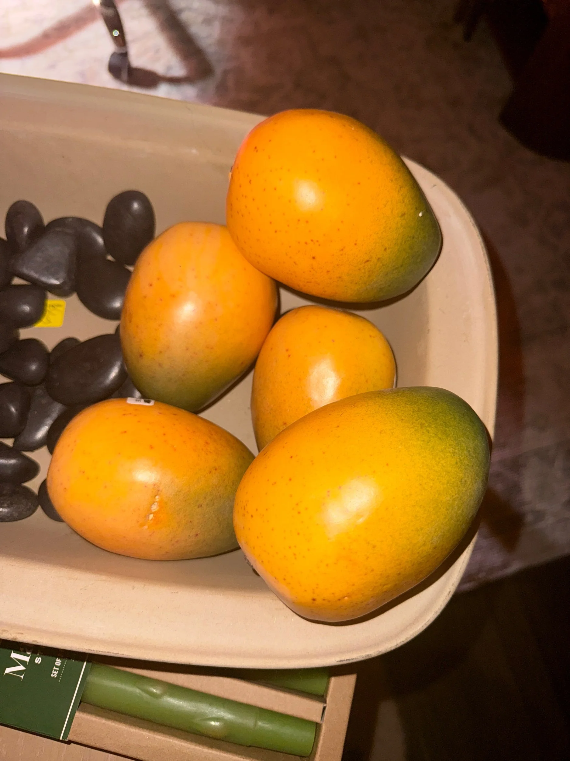 Shop › Decorative Mangos Image 1 of 3 Image 2 of 3 Image 3 of 3 Decorative Mangos $2.00 One singular Decorative / Faux Mango Add To Cart Added! One singular Decorative / Faux Mango