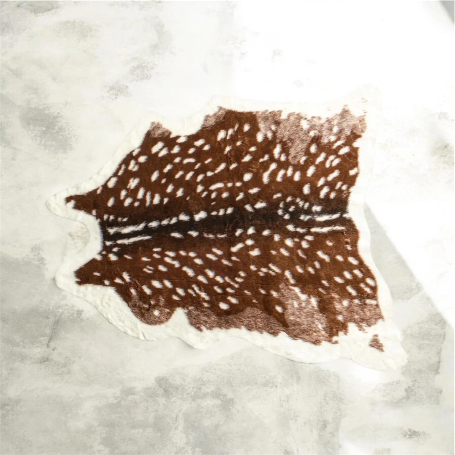 Add some artistry to your room with this 5' x 8' off white and brown faux cowhide tufted washable non skid area rug. This novelty shape rug in off white and brown features an animal print that combines a good looking print with a unique shape. The mix of shape, color, and design gives this rug refreshing visual interest. Area Rugs help to give warmth and sense of home to your space. 0.8" H x 63" W x 90" DMade from Acrylic Plush - 100% Animal-Free FibersNo backing, use of rug pad recommendedUnique and good looking cow print / faux cowhide rug has a soft low pile and a natural sheen.Luxury and style with zero animal crueltyVersatile and can be used as an area rug or as a throw / decorative accessory draped over a chair, bed or sofa.